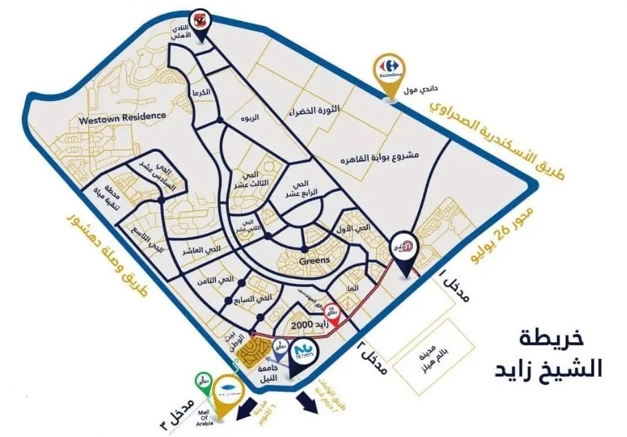 - الكمبوند بجوار مولات شهيرة مثل كايروفيستيفال مول وكونكورد مول وماكسيم مول.